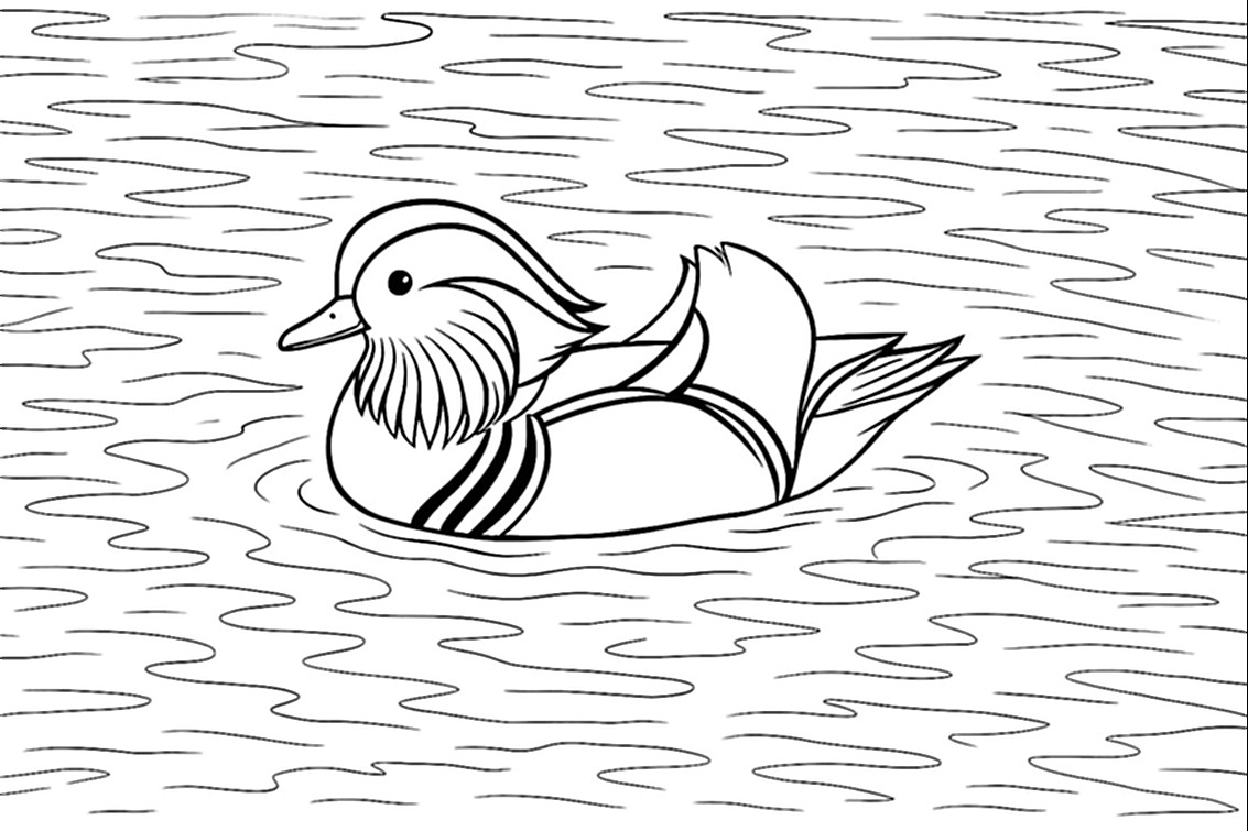 Ausmalvorlage für eine Mandarinente